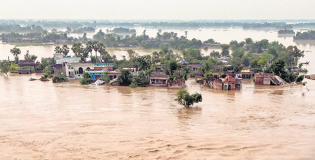 PATNA: Hundreds of villages remain marooned in flood-hit Bihar districts two days after river embankments were breached at many places. Major rivers are flowing above the danger mark as people displaced by the floods have been forced to live under the open sky on roads and elevated parts of the villages.