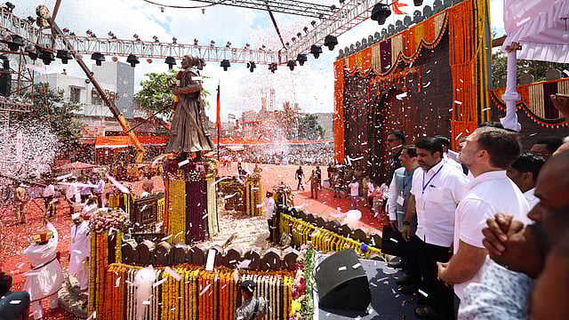 "There is no use of bowing before bowing before Shivaji Maharaj after scaring people, destroying the Constitution and institutions in the country," Gandhi said.