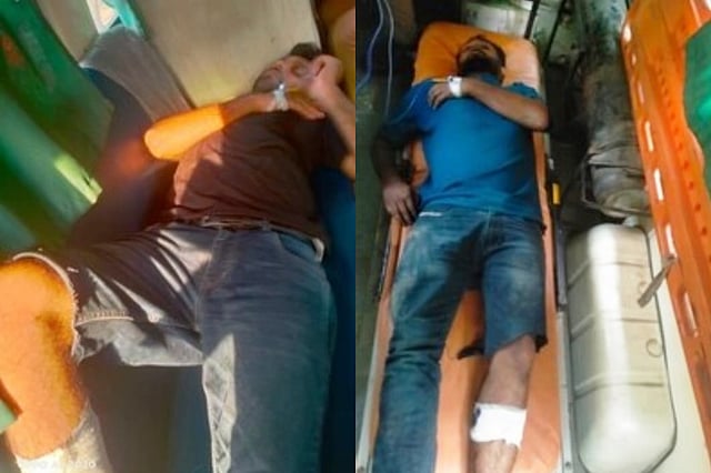 A doctor at a local health care centre said, "Two people were brought here around 2.35 pm. One of them was named Sarfaraz and the other Taleem. One of them had injuries on his left leg and the other on his right leg."
