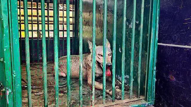 The wolf attempted to flee but was trapped in a net laid by the forest department. With the help of villagers, the forest workers managed to capture and cage the wolf, said the DFO.