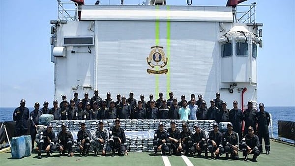 The ICG on Monday said the operation was "based on a corroborated input from Gujarat ATS, an ICG ship from the Coast Guard Region (West), which was on multi-mission deployment off North Maharashtra/ South Gujarat area, diverted and intercepted an attempted transshipment in proximity of the International Maritime Boundary Line (IMBL)."