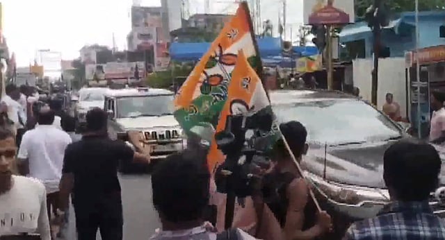The situation changed as soon as his convoy reached Khagrabari Chowpati at around 12.35 pm. Several people had already gathered in that area, carrying Trinamool Congress flags. A few also had black flags in their hands.
