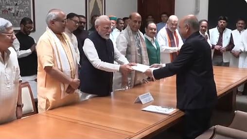 Modi, Shah, senior ministers Pralhad Joshi, Dharmendra Pradhan and other NDA leaders, including TDP leader and Union Minister K Ram Mohan Naidu, Shiv Sena leader Shrikant Shinde, LJPSP leader Chirag Paswan escorted Radhakrishnan to the office of the returning officer in Parliament.