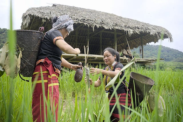“Binnyat,” a ritual for bumper harvest performed on the second day of the three-day festival held from August 21-23, was performed in a more ritualistic and collective way. An open museum showcased Adi life, from agriculture and attire to mithun and traditional weapons. Traditional games such as tug of war and archery were revived, while eco-workshops in paper-making and eco-printing by well-known artist Ushimi Linggi engaged children and women alike.