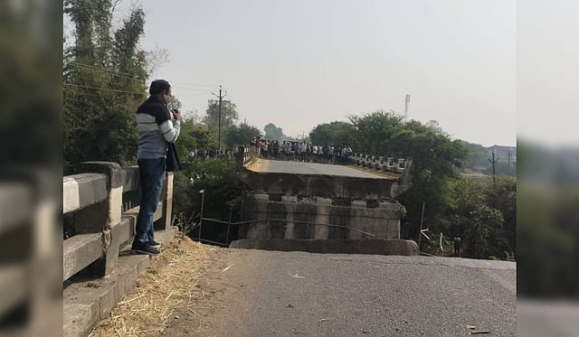 The bridge, built in 1980, was under repair and maintenance work by the MPRDC, when its portion collapsed. The labourers working under the bridge, however, had a close shave. A sum of Rs 98 lakh was sanctioned for the repair and maintenance of the bridge, due to rusting of reinforcement slabs.