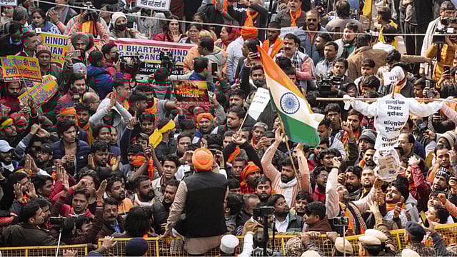 Chaos erupted outside the Bangladesh High Commission in New Delhi on Tuesday as hundreds of protesters affiliated with right-wing extremist groups Vishwa Hindu Parishad (VHP) and Bajrang Dal clashed with the police. The demonstrators were protesting the lynching of a Hindu man in Bangladesh.