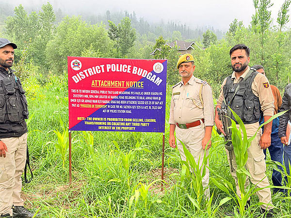 "In compliance with the directions of Special NIA court, land measuring one kanal and two marlas under Survey No. 466 situated at village Wadwan and land measuring 11 marlas under Survey No. 343 located at village Chattabugh in Budgam has been ordered to be attached," a police spokesman said.