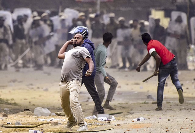 Assam Police DGP Harmeet Singh was hit on the shoulder with a stone, while IG (Law and Order) Akhilesh Kumar Singh suffered injuries on his leg.