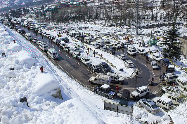The heavy tourist rush has triggered traffic jams in Manali, particularly at the entrance to the town, on the route to the Hadimba Temple, the Old Manali road, in Prini, Aleo and Vashisht villages, and along the Manali Leh highway towards the Atal Tunnel and Rohtang Pass.