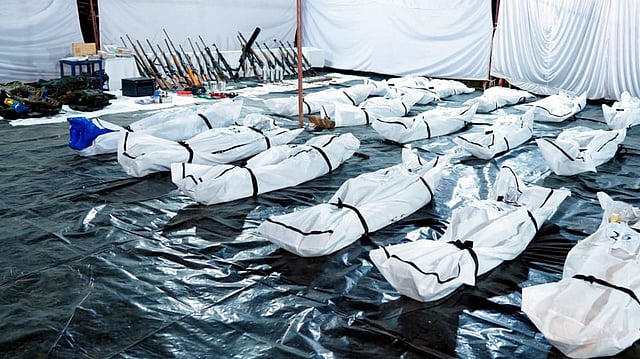 The recovered bodies of the cadres of left-wing extremists are yet to be identified. A large cache of weapons and explosives were also recovered from the scene.