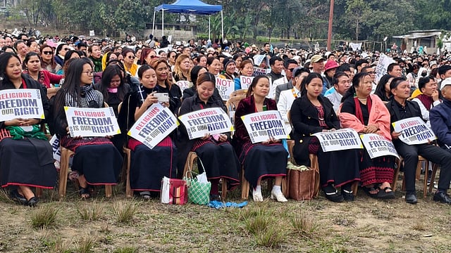 GUWAHATI: Thousands turned up at a ground in Itanagar on Monday as the Arunachal Christian Forum (ACF) staged an eight-hour hunger strike in protest against the state government’s move to implement the Arunachal Pradesh Freedom of Religion Act (APFRA), 1978. Some MLAs were among the participants.