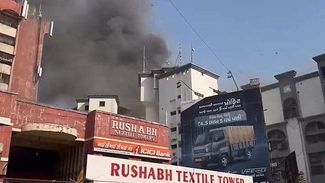 SURAT: A massive fire broke out in a four-storey textile market in Surat city on Wednesday morning, for the second time in less than 24 hours, an official said.