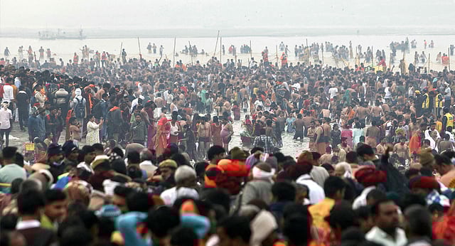 The day draws large crowds of devotees to the sacred confluence of the Ganga, the Yamuna, and the mythical Saraswati, considered holy by Hindus.