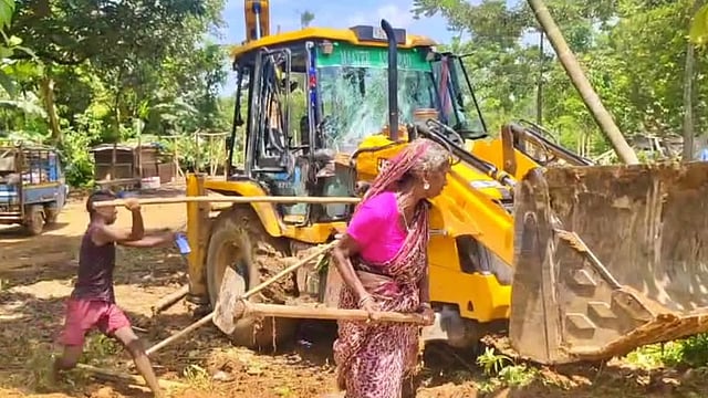 A group of encroachers, including women, carried out the attack with bricks and bamboo poles, damaging two excavators. The eviction drive was carried out in three Muslim villages -- Charuwa Bakra, Chirakuta and Santoshpur -- falling under the Chapar revenue circle.