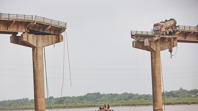 Visuals showed the entire slab of the bridge between two piers having collapsed. The slab collapse caused the vehicles, which were passing through it, to plunge into the river.