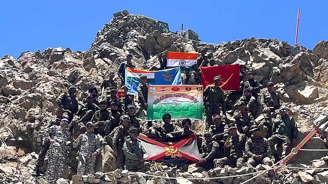 A team of 30 brave soldiers from various units that actively participated in the Battle of Tololing climbed the peak and hoisted the Tricolour, paying tribute to the heroes of Operation Vijay.