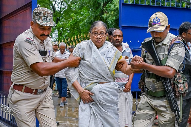At Chandghar Adarsha Vidyapith's booth No. 56, the Congress alleged that its polling agent was forcibly removed by Trinamool workers, an allegation denied by the ruling party.