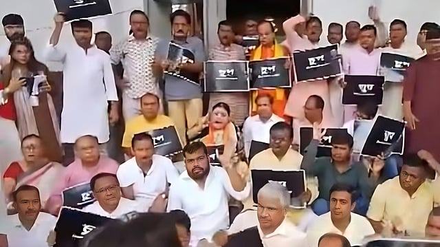 The BJP MLAs--Chief Opposition Whip Sankar Ghosh, Agnimitra Paul, Sankar Oraon and Dilip Burman--staged a walkout from the House and held demonstrations outside the Assembly gate. The four were suspended for their alleged disrespect to the chair and unruly behaviour in the House.