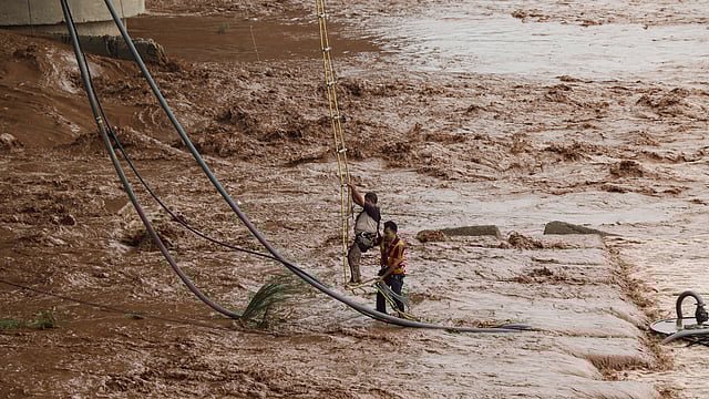 JAMMU: Nine men were rescued Wednesday in a joint operation by police and SDRF teams after they were trapped in the Tawi river following a sudden rise in the water level due to rains that lashed many parts of Jammu and Kashmir, officials said.