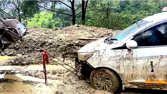 In Chamoli district, relentless heavy rainfall since Friday night has severely disrupted daily life. The Badrinath Highway has been affected by landslides and debris at multiple points. Near Nandnagar, a pilgrimage vehicle became stuck in the Parthadeep landslide zone; however, all passengers were safely evacuated beforehand.
