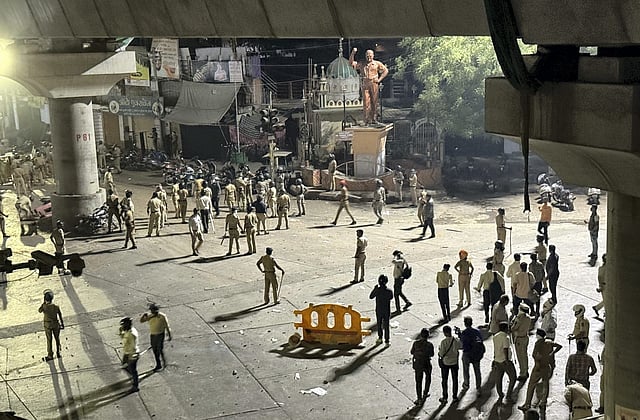 NAGPUR: Violence erupted in central Nagpur on Monday with stones hurled at police amid rumours that the holy book of a community was burnt during an agitation by a right-wing body for the removal of Aurangzeb's tomb, leaving six persons and three policemen injured, officials said.