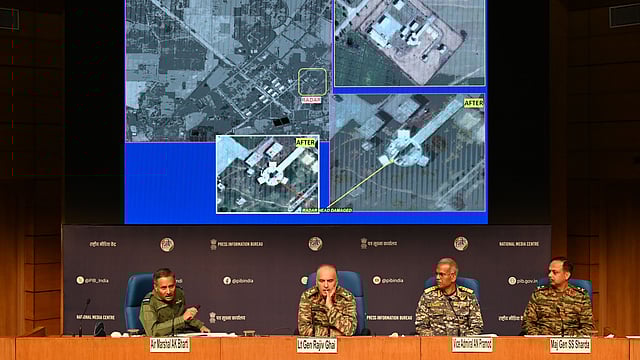 ■ Air Marshal AK Bharti, during a joint press briefing with defence officials on Sunday, showed detailed video of the effects of Indian Air Force operations during its air raids at Arifwala air defence radar in Pakistan, the Chaklala airfield and Sargodha