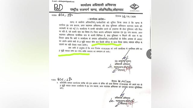The order stated that the service book of Assistant Engineer Jay Prakash had been lost from the cupboard of the Establishment Assistant, noting that the Assistant Engineer was “mentally very worried” due to the loss. The directive then suggested, “In the absence of finding the service book,” the order read, “the idea came, why shouldn’t all the officers and employees of the office, based on divine faith, ask for two handfuls of rice from their respective homes and deposit them in a temple, and the deity will deliver justice.”