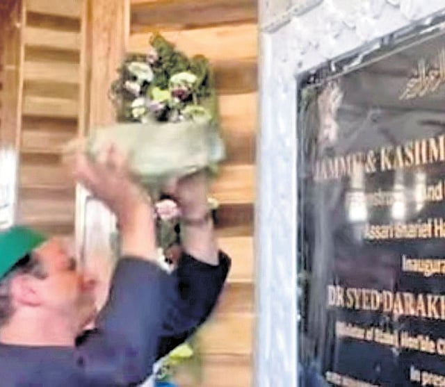 The foundation stone—inaugurated last week by J&K Waqf Board chairperson and BJP leader Darakhshan Andrabi—was vandalised by unidentified individuals after Friday prayers, prompting the police to register a case.