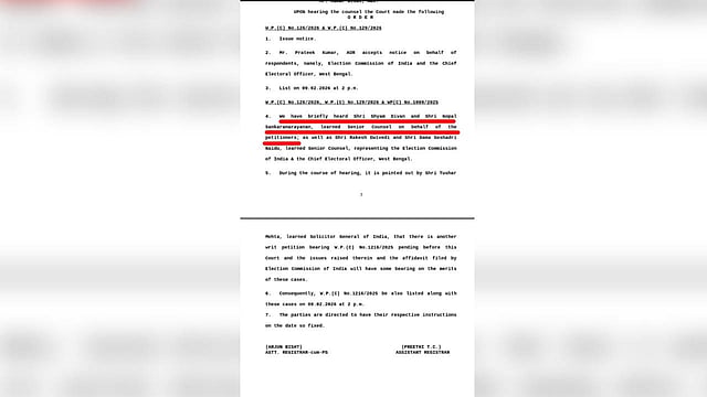“We have briefly heard Shri Shyam Divan and Shri Gopal Sankaranarayanan, learned senior counsel on behalf of the petitioners: as well as Shri Rakesh Dwivedi and Shri Dama Seshadri Naidu, learned senior counsel, representing the Election Commission of India & the Chief Electoral Officer, West Bengal,” the order had stated as shared by Suvendu on his X account.
