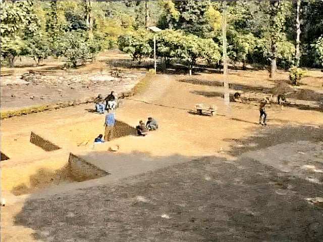 Archaeologist Vipul Mishra said the team has so far excavated to a depth of 10 to 14 feet. The site has yielded ancient bricks and pottery shards (mridbhand).