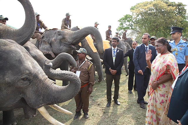 GUWAHATI: President Droupadi Murmu, who inaugurated the Gaj Utsav-2023 at the Kaziranga National Park in Assam on Friday, took a jeep safari and fed elephants.