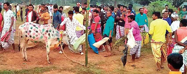 BARIPADA: Tribals of Mayurbhanj, particularly the Santhal community, observed the traditional festival of ‘Sohrai’ or ‘Bandhana’ on Friday, coinciding with Kali Puja celebrations. The community members congregated at Budhikhamari village in Bisoi on the day and worshipped cows. The festival is observed a day after the new moon (Amavasya) when other communities worship Goddess Kali and continues for a fortnight.