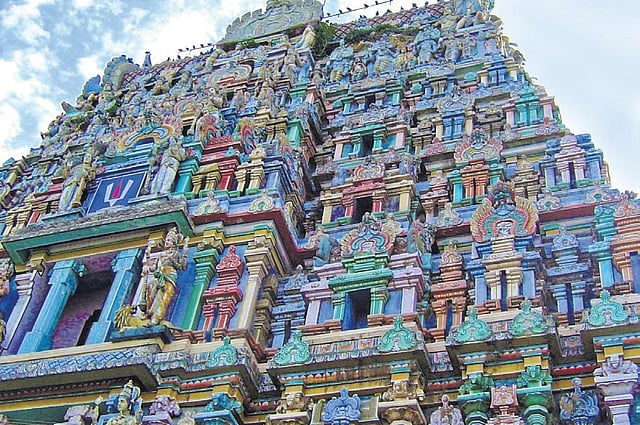 Thirukkannapuram, close to Nannilam, is famous for its Vishnu temple dedicated to Neelamegha Perumal, also known as Sowriraja Perumal. It is one of the one hundred and eight Divya Desams which are places sacred to Vishnu, eulogised in the Tamil verses of the Azhvars (famous devotees of Narayana). This deity has been praised by Nammazhvar, Kulasekhara Azhvar, Periyazhvar, Andal and Thirumangai Azhvar. This place is also known as Ashtakshara Mahamantra Siddhi Sthalam as it is said that the deity taught the Ashtakshara Mantra t o Thirumangai Azhvar here.