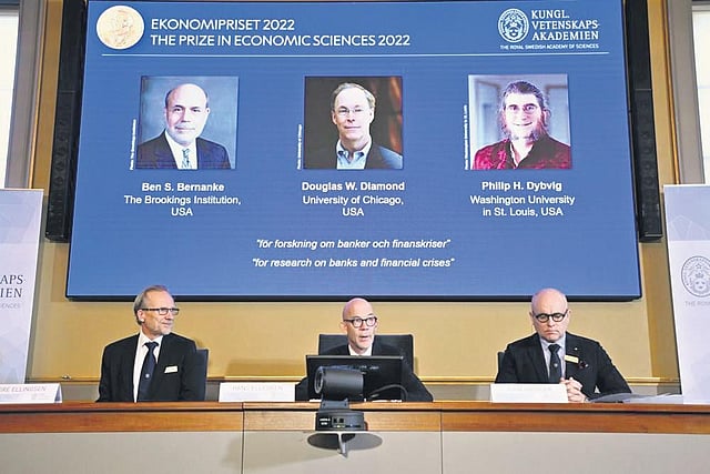 The awards were announced on October 10. The awardees of the Sveriges Riksbank Prize were: Ben S Bernanke, the former Federal Reserve Chair, Douglas W Diamond of the University of Chicago, and Philip H Dybvig of the Washington University. In its citation, the Nobel Committee said that the research insights of the three economists have helped better manage financial crises. In a Popular Science Backgrounder (The Prize in Economic Sciences 2022), they explained, at length, the key role played by banks in generating and spreading the crises. On Bernanke, they said, “Through statistical analysis and historical source research, (he) demonstrated how failing banks played a decisive role in the global depression of the 1930s.” The Committee leaned heavily on the research of these economists in the Eighties.