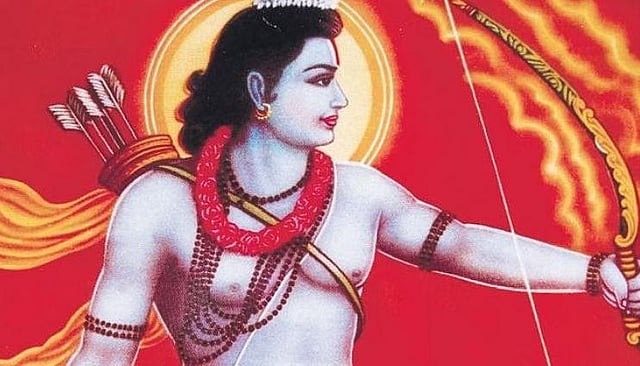 Analysing the vengeful, saffron-clad Rama of this period, Anuradha Kapur observes, “The transformation of the Ram image from that of a serene, omnipresent, eternally forgiving God to that of an angry, punishing one, armed with numerous weapons, wearing armour and even shoes is truly remarkable. Where does this new Ram, laden with all manner of martial gear, come from?”