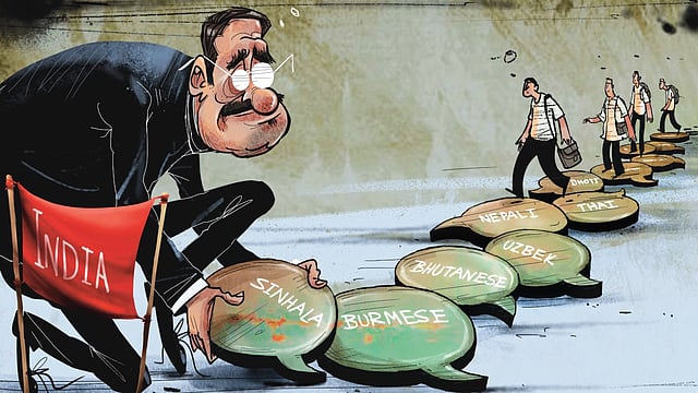 However, for extensive efforts towards building upon both the shared epical and Buddhist traditions, India will need to walk on the language path. For any country, the languages in its neighbourhood are important for multiple reasons. India is surrounded by at least 12 groups of people speaking as many languages—Sinhala, Bahasa Malaysia, Bahasa Indonesia, Burmese, Thai, Khmer, Bhoti, Uzbek, Kazakh, Bhutanese, Nepali and Pashto. Of these, there is hardly any university department in India offering undergraduate courses in Sinhala, Khmer, Bhutanese, Bhoti and Kazakh. A central university in the Northeast teaches Burmese, but to very few students.