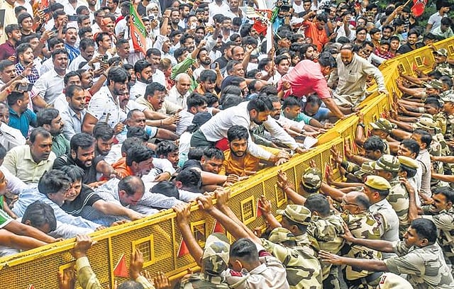 In due time, Sisodia, then still Deputy CM of Delhi, was escorted in by a posse of cops. He was sporting a frozen smile and seemed ill at ease, a far cry from someone touted by his party to be an efficient administrator.