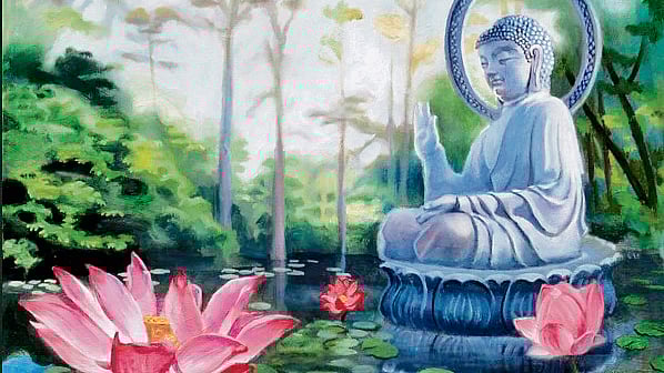 Sudas went to the mango orchard and placed the lotus at Gautam Buddha’s feet. The seth and the king were already seated there and told the Buddha of Sudas’s refusal to sell the lotus. Buddha said, ‘You should have sold the lotus. They were offering you so much money. I cannot give you anything.’ Sudas said with tears in his eyes, ‘If you hold the lotus in your hand, my flower and I will be remembered for centuries, as long as you are remembered.’