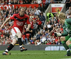 Berbatov's relief was obvious with his celebration, but the 2-0 lead lifted all of the United players and Rooney's second goal, a deflected strike off the right leg of Mario Melchiot, put United out of sight.