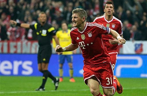 Arsenal did score through Podolski after 57 minutes but were 3-0 in aggregate arrears by then. Schweinsteiger had struck three minutes earlier, calmly controlling a good pass from Ribery, and placing his shot past Fabianski.