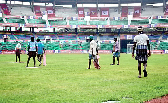 CHENNAI: With just two days left to go for Chennaiyin FC’s first home game against Kerala Blasters, the groundsmen at Jawaharlal Nehru Stadium face a serious task to get the turf ready for match.