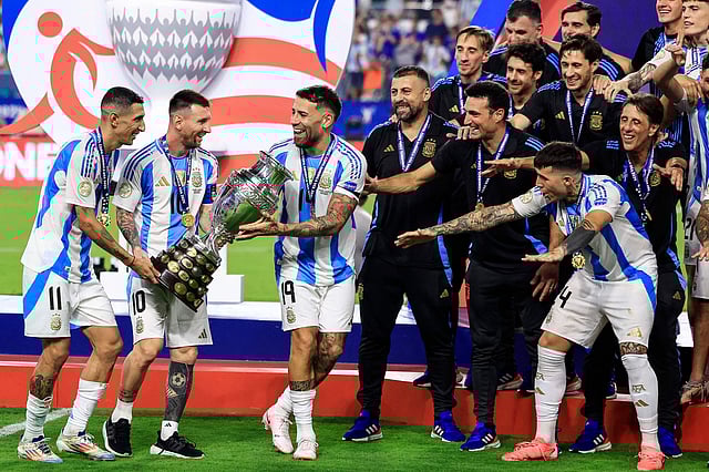 That sense of unity — all for one and one for all — has come to define the team over the last three years. It was evident when a shattered Messi cried his guts out after being forced off with an ankle injury on Sunday. He didn't want to possibly go off in this manner in what could yet be his final competitive game for Albiceleste. As he was crying, Leandro Paredas offered him a shoulder. In the stands, people were crying with Messi. An hour later, as Sunday turned to Monday in Miami, Martinez slammed home what turned out to be the winner.