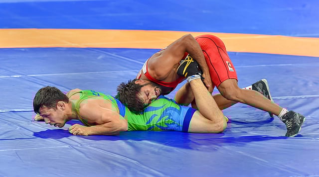 JAKARTA: India's ace grappler Bajrang Punia stormed into the final of the men's freestyle 65kg category beating his Mongolian opponent Batmagnai Batchuluun in the semi-finals of the 18th Asian Games here on Sunday and is now one win away from Gold.