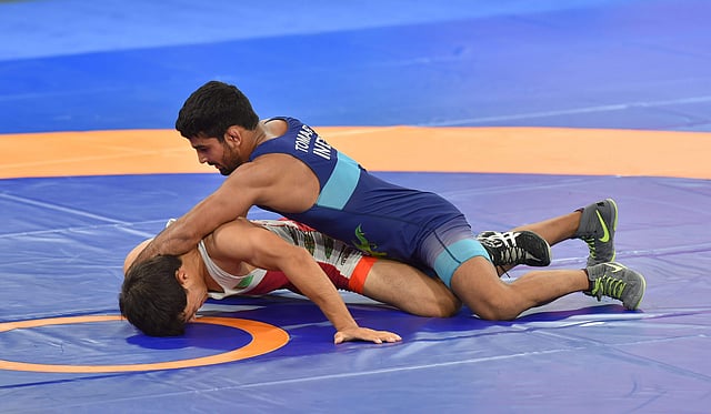 JAKARTA: Sandeep Tomar has beaten Rustem Nazarov of Turkmenistan 12-8 in the Men's Freestyle 57 kg to reach the quarter-finals.