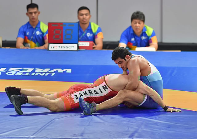 Meanwhile, Sandeep Tomar won his 1/8 round 12-8 against Turkmenistan's Rstem Nazarov to move into the quarter-finals of the men's 57kg freestyle event.