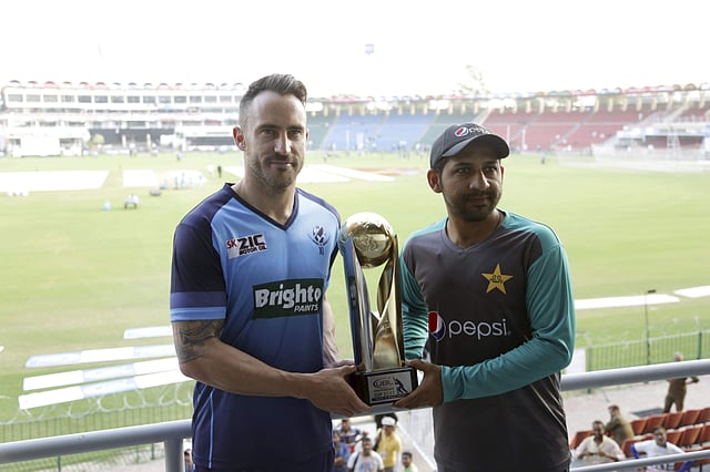 LAHORE: World XI skipper Faf du Plessis won the toss and sent Pakistan into bat in the first of three Twenty20 internationals at Gaddafi Stadium in Lahore on Tuesday.