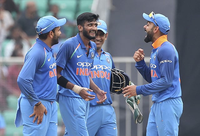 Ravindra Jadeja stood out with figures of 4 for 34 while Khaleel Ahmed and Jasprit Bumrah took two wickets each.