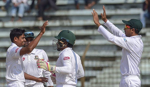 Left-arm spinner Taijul led Bangladesh's attack with his seventh five-wicket haul in Tests, while Shakib al Hasan and Mehidy each picked up two wickets.