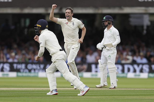 Chris Woakes took six wickets for 17 runs and Stuart Broad 4-19 in an Ireland second innings that lasted just 15.4 overs.