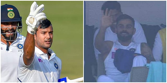 After reaching the 150-mark, the 28-year-old raised his bat towards the Indian dressing room in celebration. To the surprise of many, along with a round of applause, captain Kohli had a message for his opener and signalled it right away using his hands. He gestured Mayank to keep swinging and score a double hundred next. The Karnataka batsman confirmed he got the instruction right by sending thumbs up right away in return.